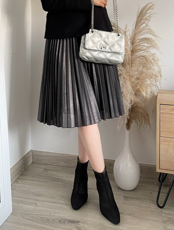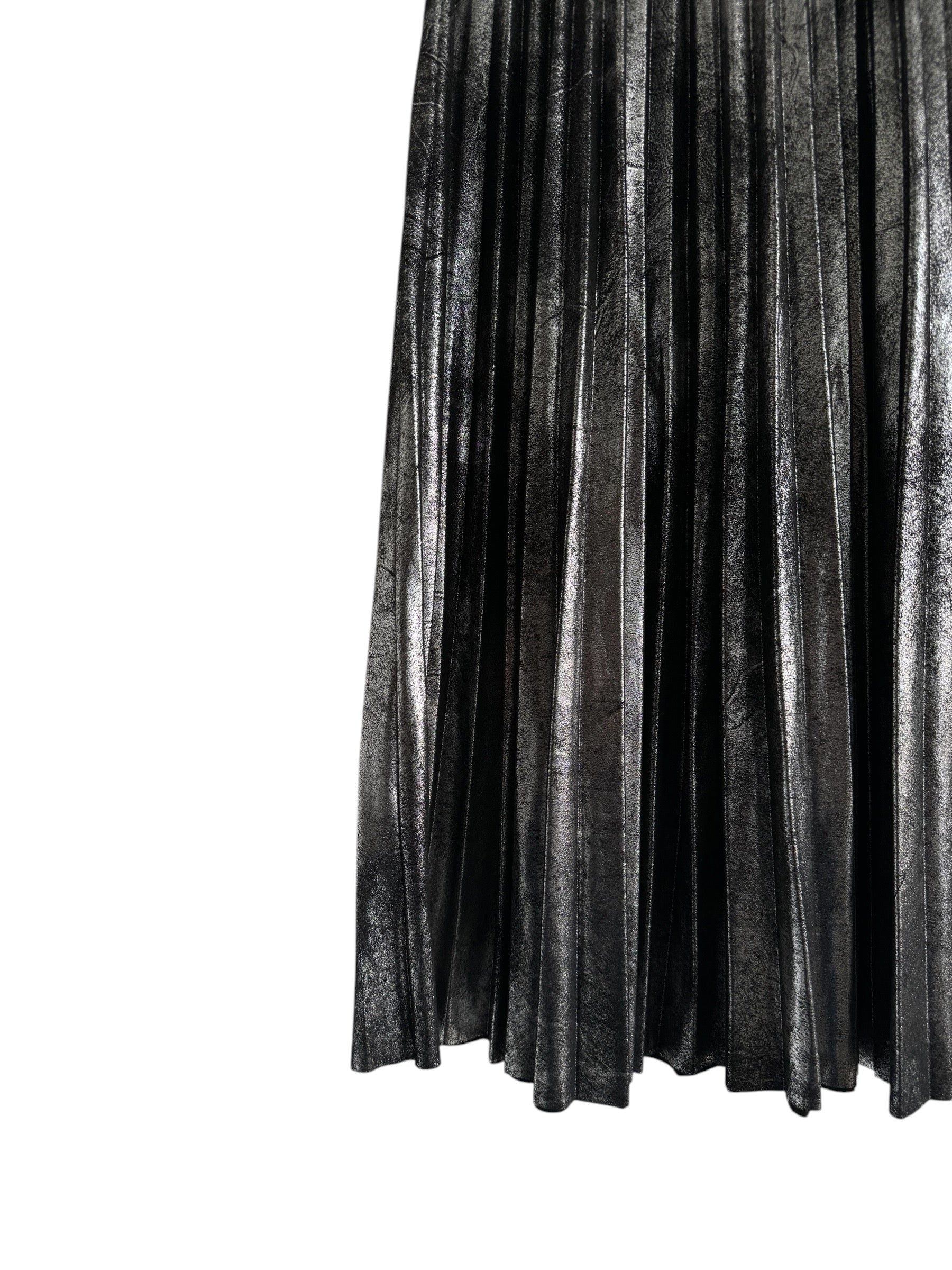 Falda plisada clásica, tela metalizada, cintura con cierre de cremallera, perfecto estado.